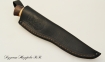 Прочные кожаные ножны надёжно защищают нож и упрощают его транспортировку, дополняют общий эстетический образ изделия ручной работы.