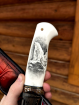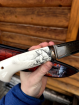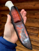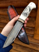 • Авторский нож "Белый медведь" сталь ламинированный дамаск, рукоять акрил белый со скримшоу