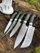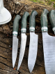Кухонный набор 5 ножей из дамасской стали с никелем, рукоять из карельской березы зеленой и подставка