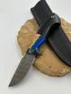 Нож "Ласка" сталь дамаск, рукоять гибрид стабилизированная карельская береза янтарь и акрил синий (распродажа)