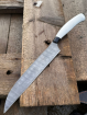 • Шеф нож №14 сталь дамаск цельнометаллический, накладки G10 белые с черным (распродажа)