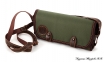 ammunition belt for 20 bullets, two-lane with shoulder strap is made from a combination of leather and fabric green. Convenient access to the cartridges ,lightweight option.