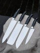 Кухонный цельнометаллический набор"Японская четверка" из стали VG-10, накладки из G10 черной