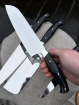 Заточим ваш нож на ручной заточной системе с алмазными камнями. Вы можете выбрать угол заточки (9-38 градусов на сторону). Напишите его в комментарии к заказу.