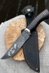 Нож охотничий "Варан" сталь булат гравировка медведя с рыбой, рукоять черный граб и мельхиор
