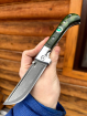 Складной нож "Пчак" из стали булат, накладки карельская береза зеленая с мусульманским значком (распродажа)